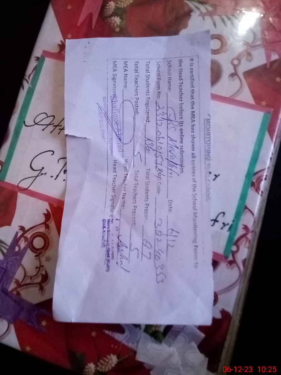 | Name: Mu**** Ar**** Designation: (School Headmaster's/Headmistress's) PST Phone/Cell Number: 03**** |