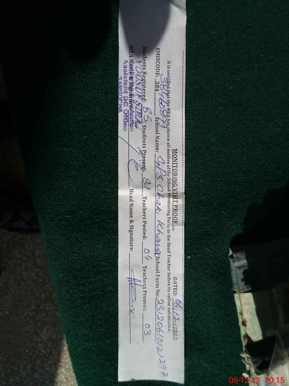 | EMIS Code: 38460899 | Name of School: GPS CHAK KHANA | |||