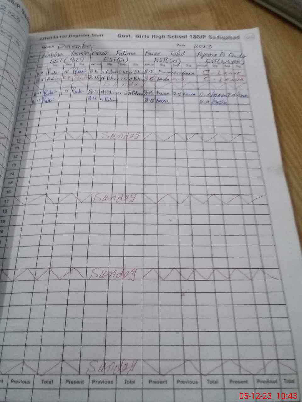 | CNIC | Full Name | Designation | R/C | Absence During Last Calender Month |