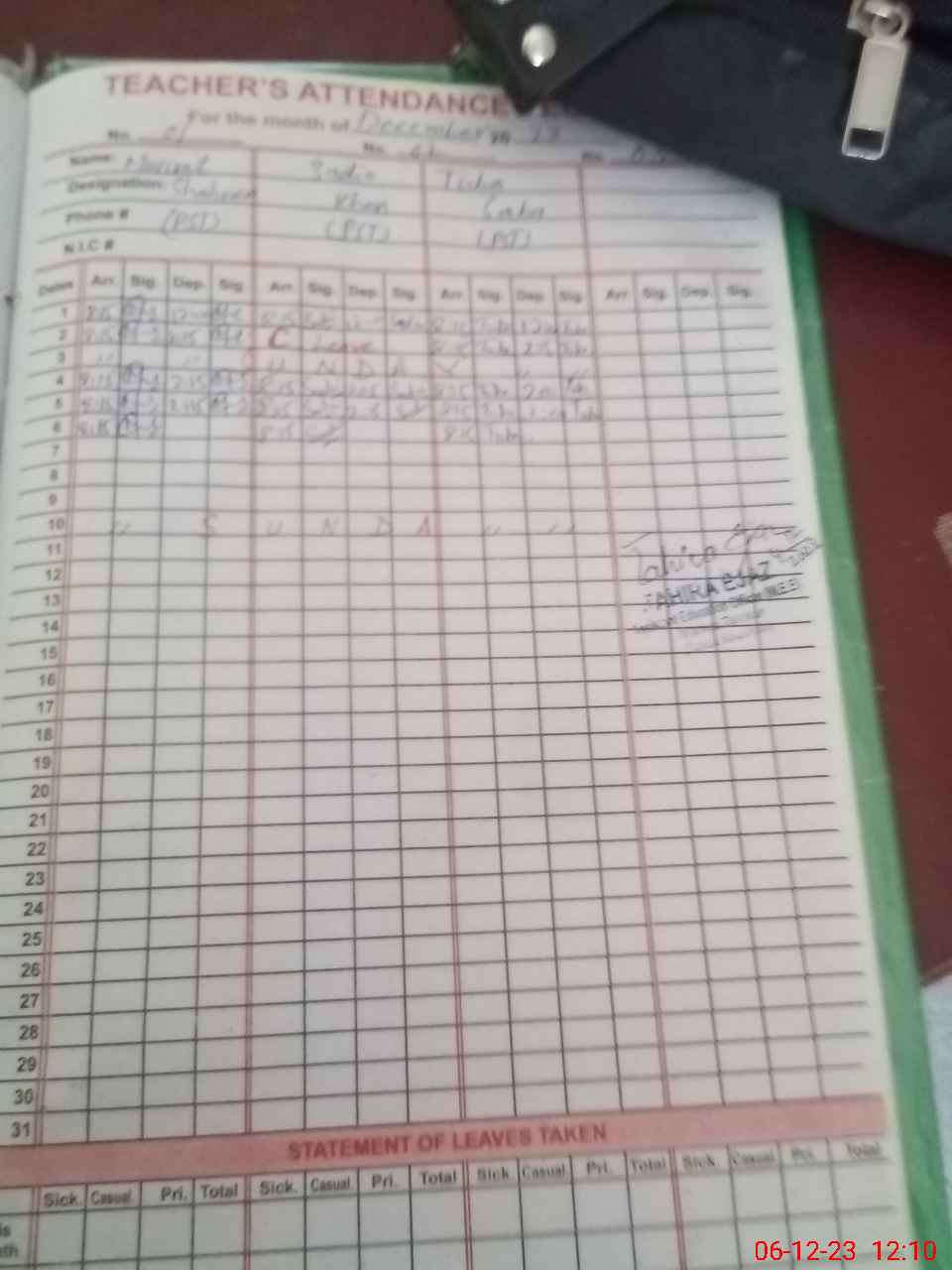 | Name: Mu**** Sh**** Designation: (School Headmaster's/Headmistress's) PST Phone/Cell Number: 03**** |