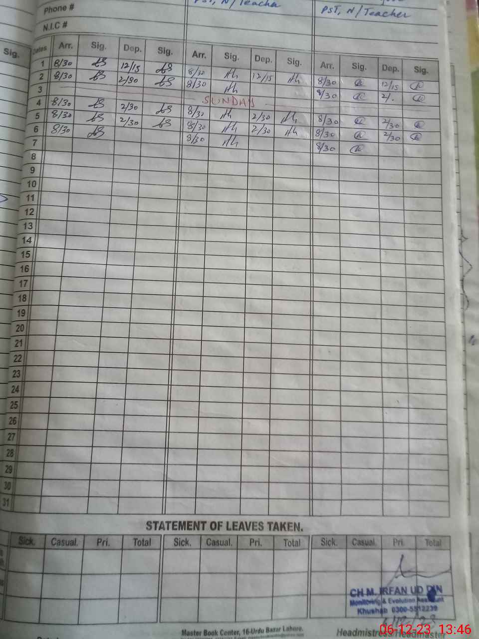 | Name: Mu**** Ta**** Designation: (School Headmaster's/Headmistress's) PST Phone/Cell Number: 03**** |