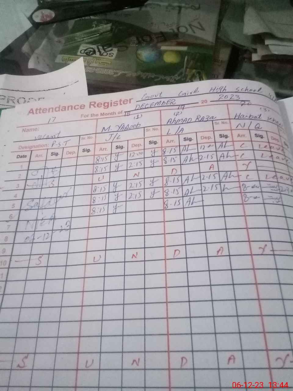 | CNIC | Full Name | Designation | R/C | Absence During Last Calender Month |