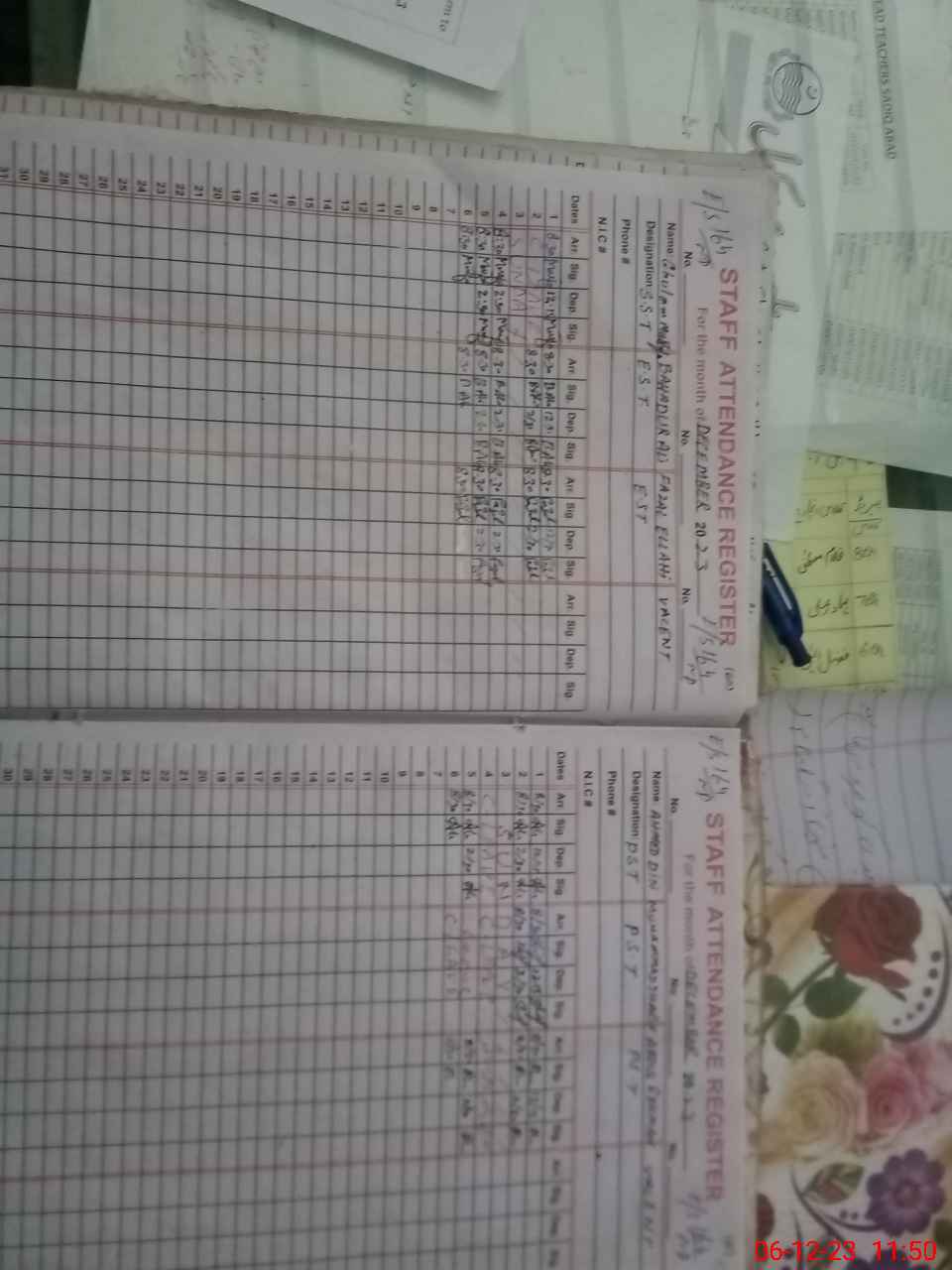 | CNIC | Full Name | Designation | R/C | Absence During Last Calender Month |