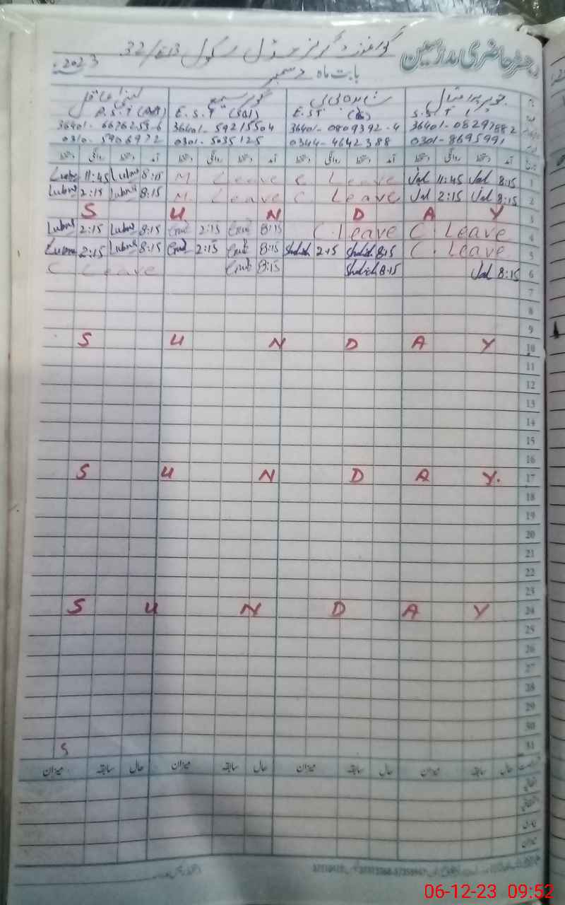 | Name: GO**** SA**** Designation: (School Headmaster's/Headmistress's) EST (SCI) Phone/Cell Number: 03**** |