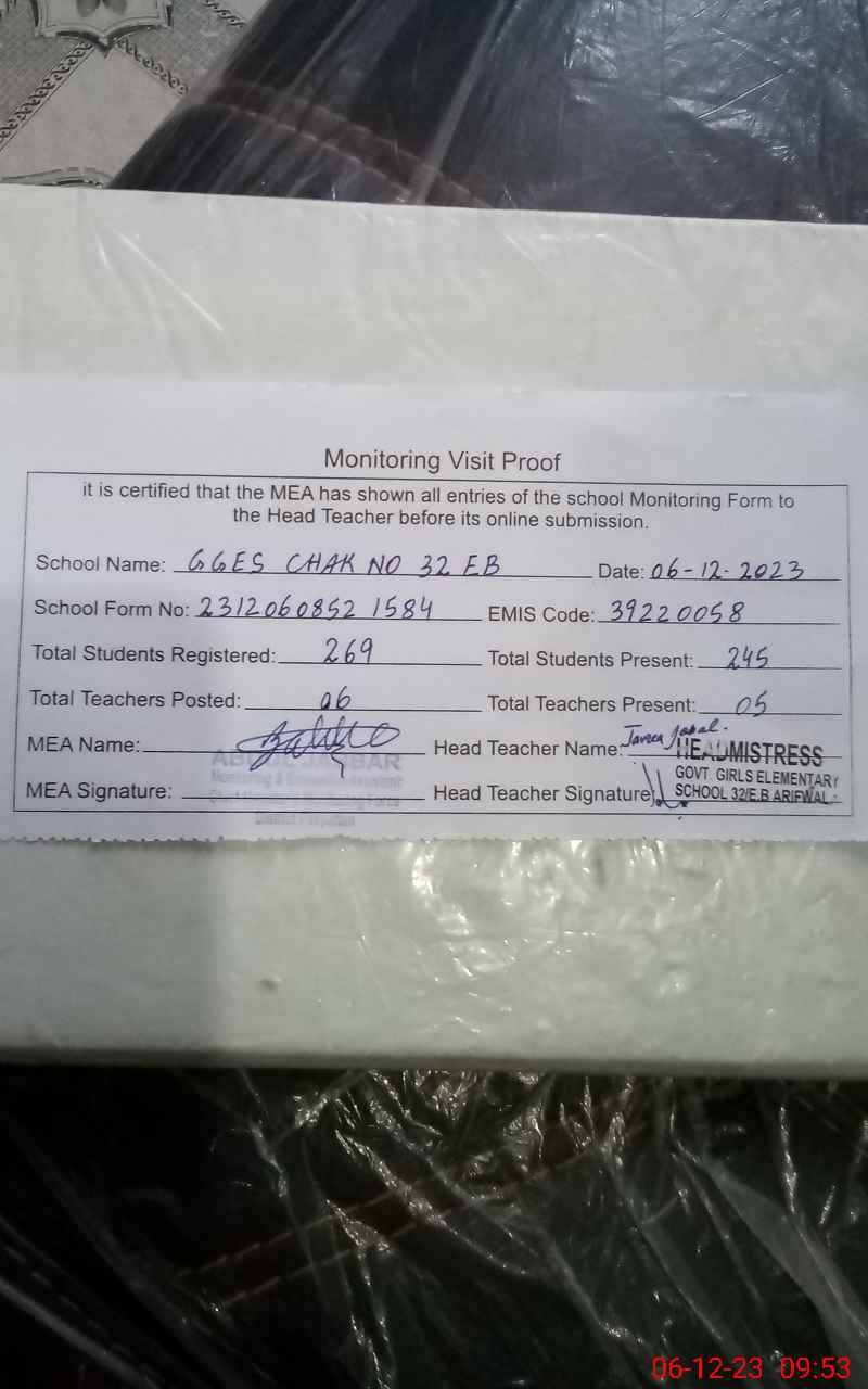 | EMIS Code: 39220058 | Name of School: GGES CHAK NO.32 EB | |||