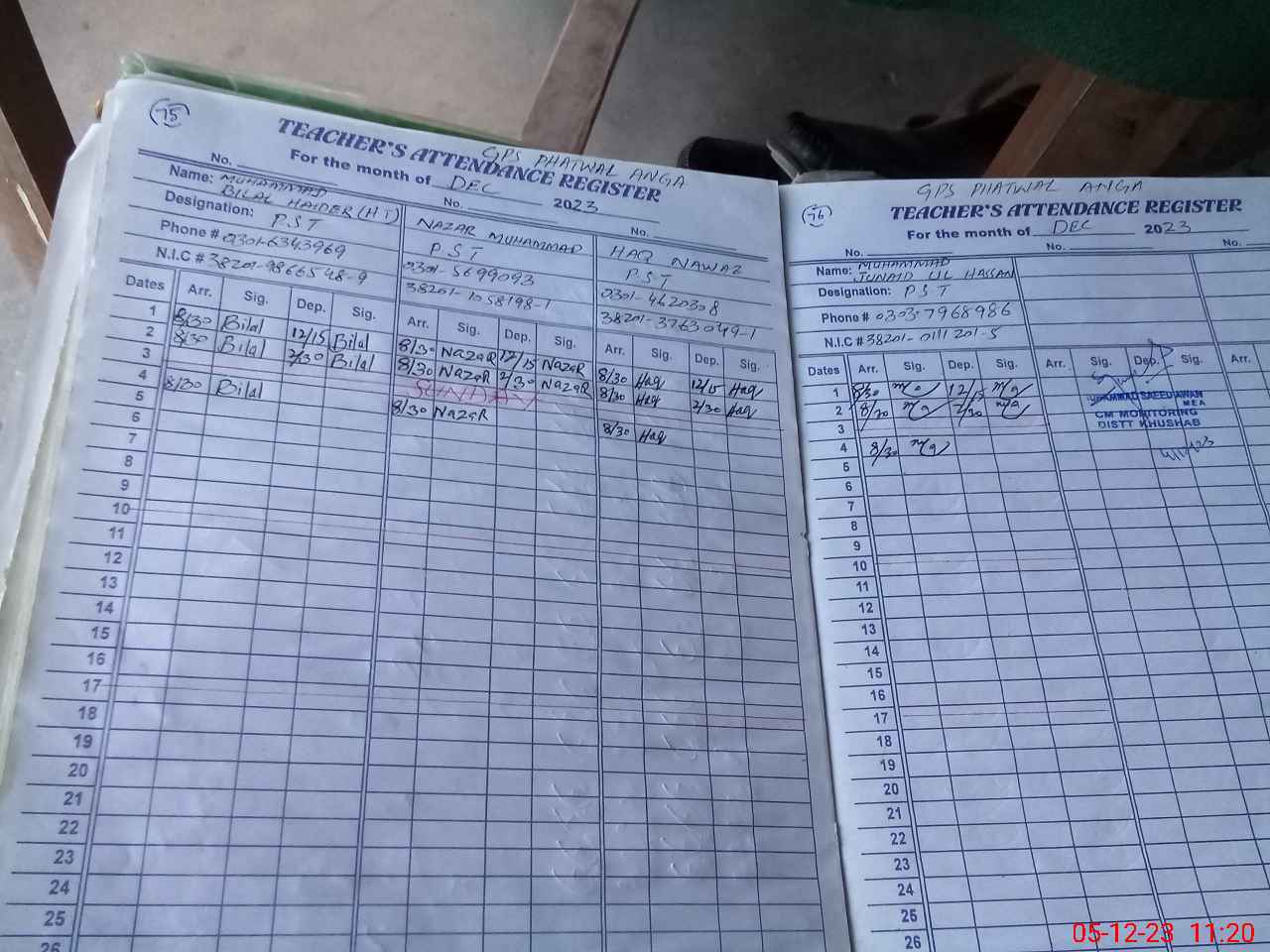 | Name: Mu**** Bi**** Designation: (School Headmaster's/Headmistress's) PST Phone/Cell Number: 03**** |