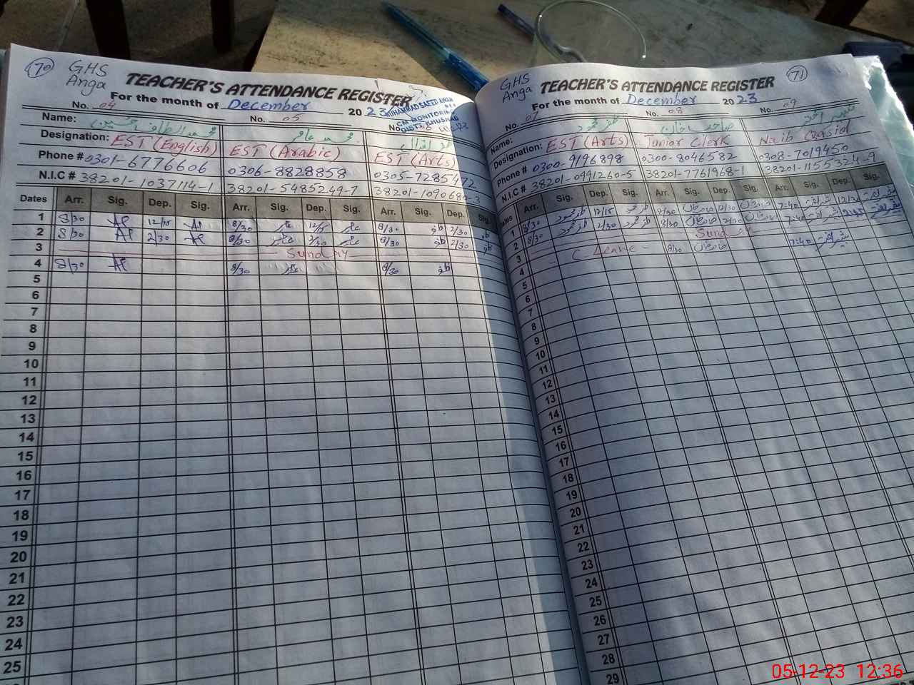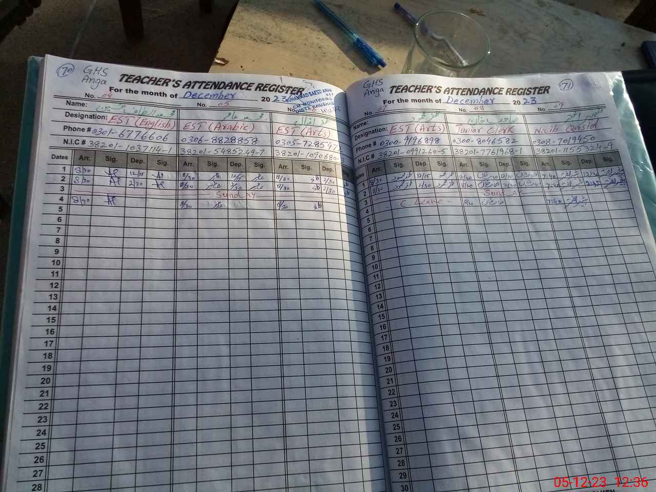 | CNIC | Full Name | Designation | R/C | Absence During Last Calender Month |