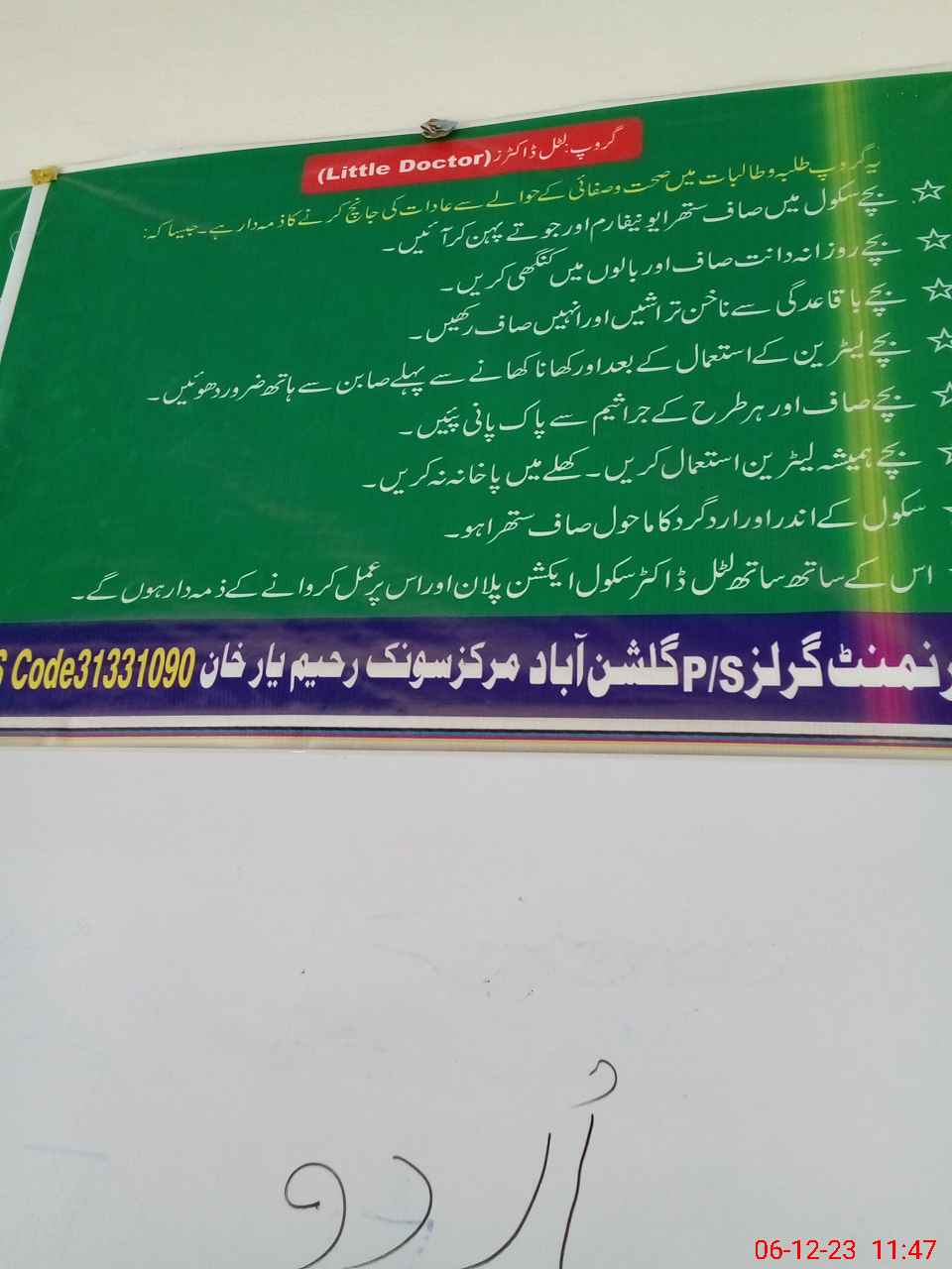 | EMIS Code: 31331090 | Name of School: GGPS GULSHAN ABAD | |||