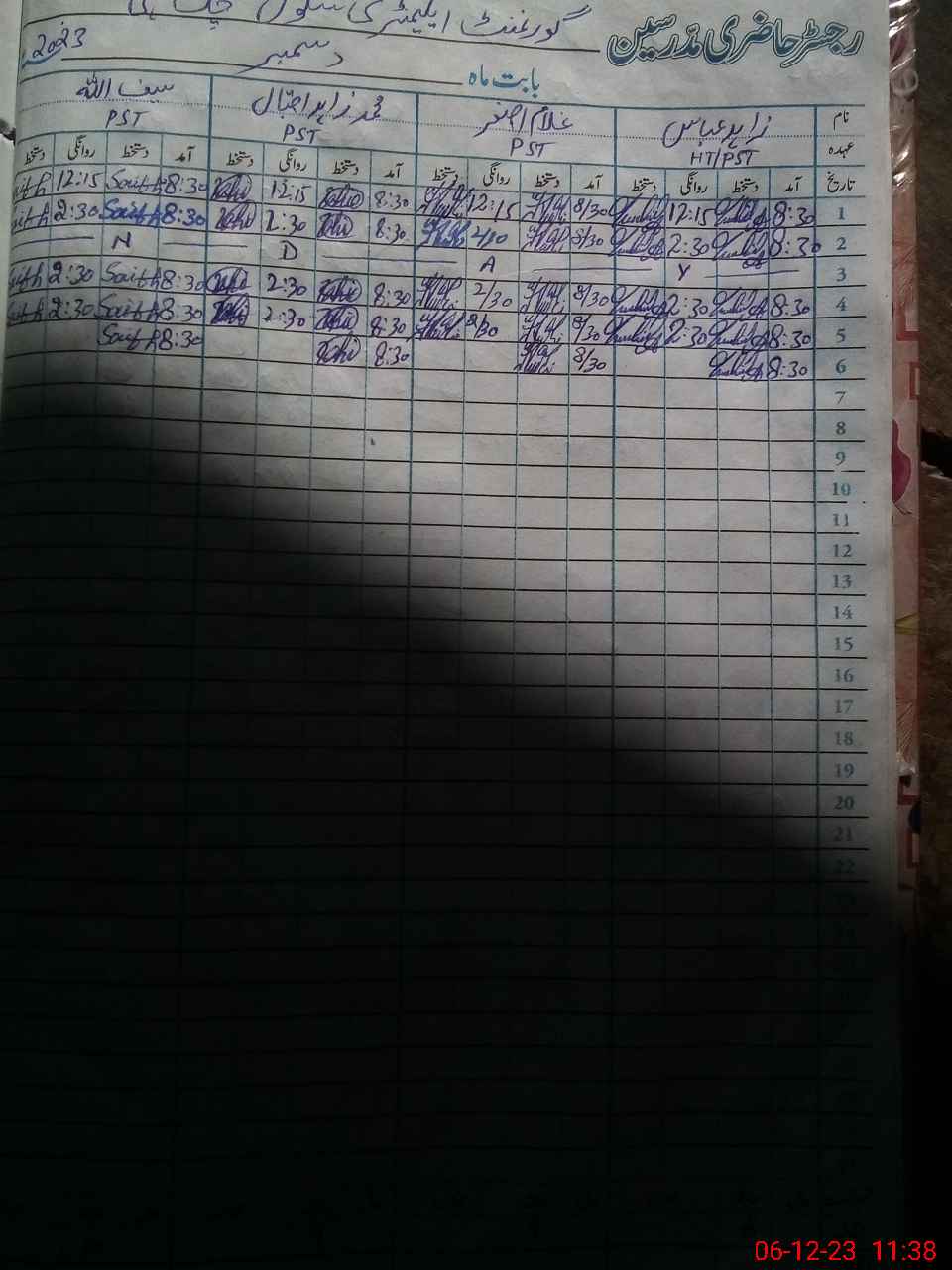 | CNIC | Full Name | Designation | R/C | Absence During Last Calender Month |