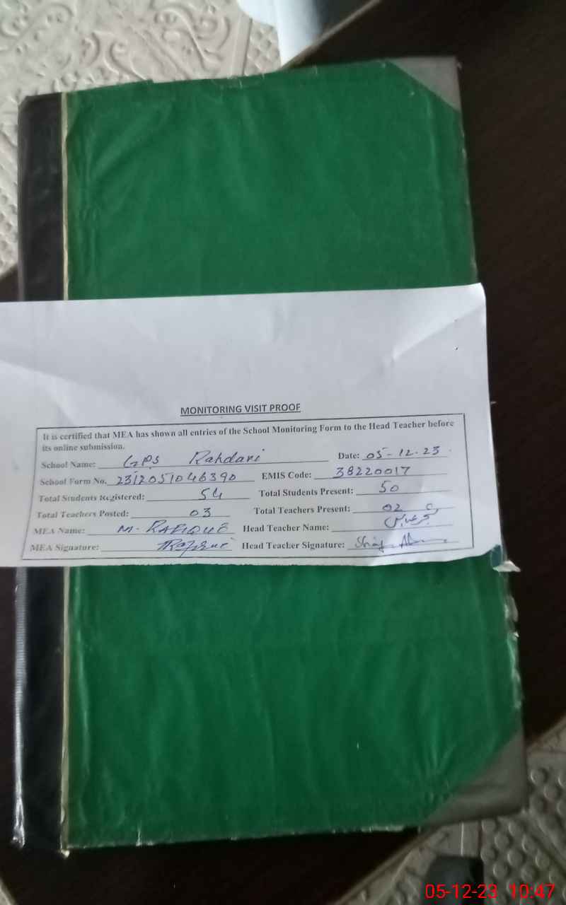 | EMIS Code: 38220017 | Name of School: GPS RAHDARI | |||