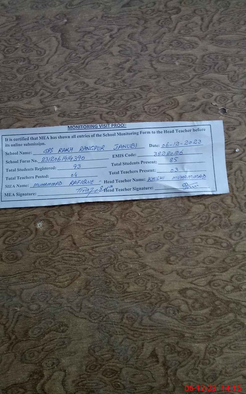 | EMIS Code: 38220106 | Name of School: GPS RAKH RANGPUR JANUBI | |||