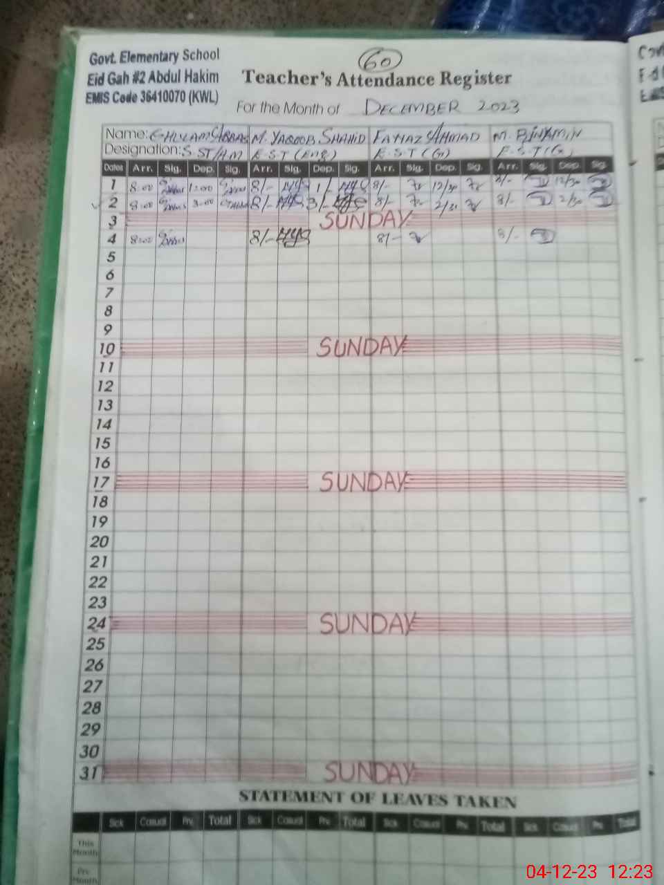 | EMIS Code: 36410070 | Name of School: GES ABDUL HAKIM NO.2 EID GAH | |||
