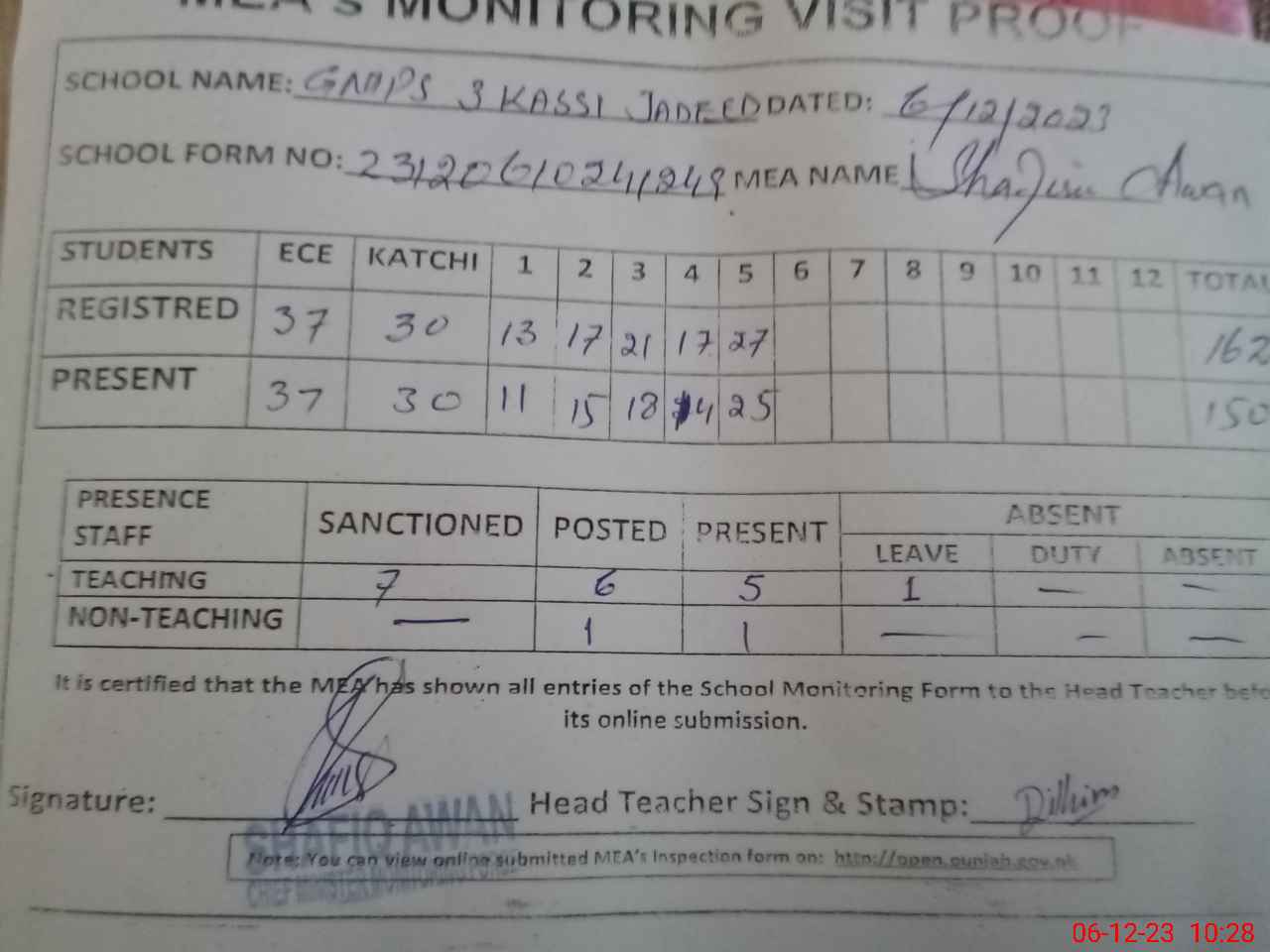 | EMIS Code: 36410355 | Name of School: GMES 3-KASSI JADEED, KABIRWALA | |||