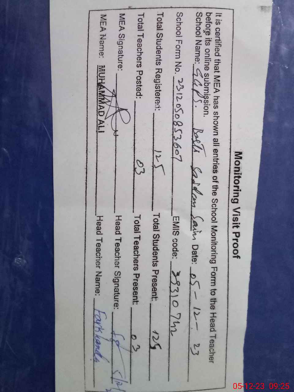 | EMIS Code: 39310742 | Name of School: GGPS BASTI SADIN SAIN | |||