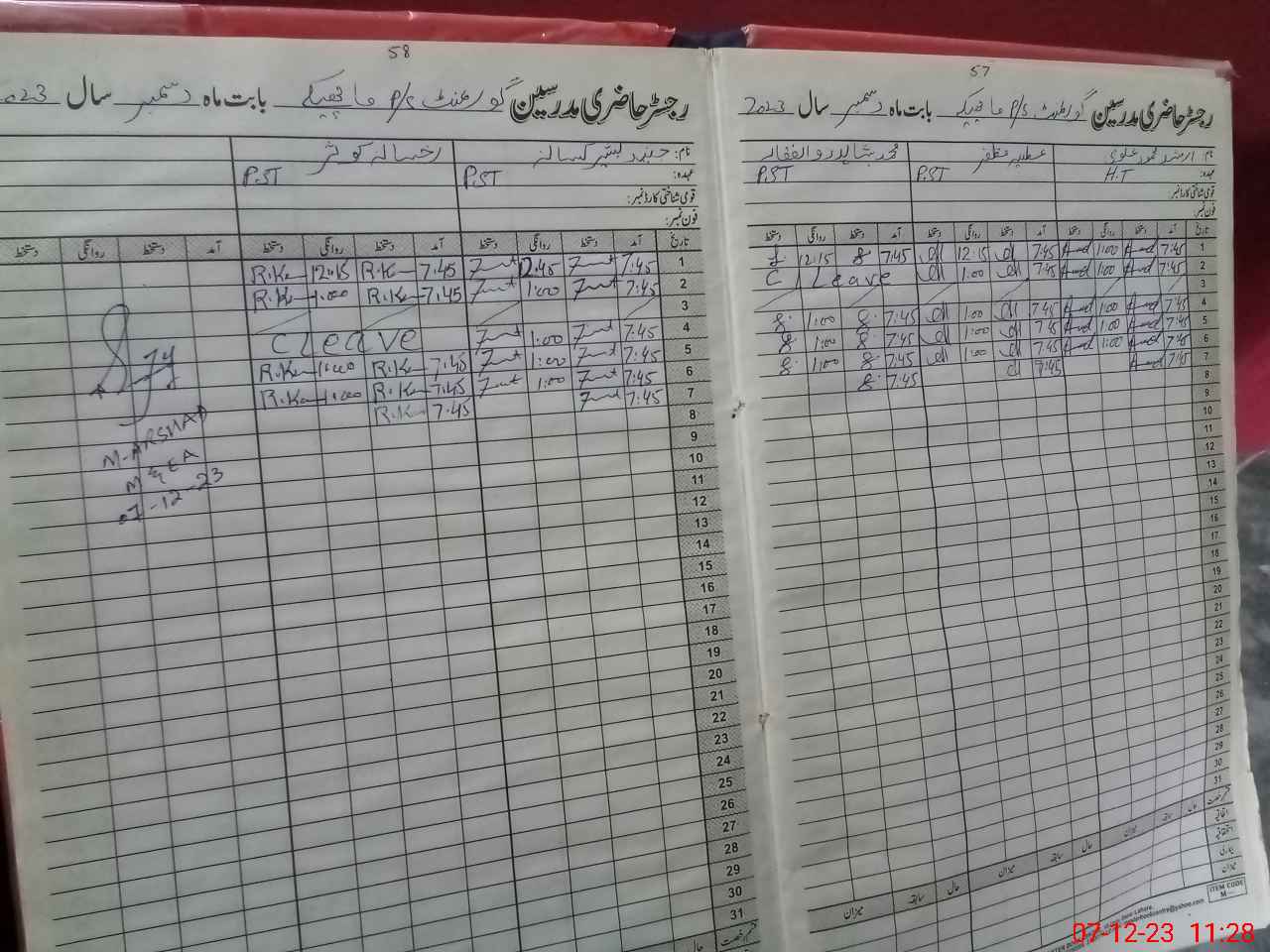 | CNIC | Full Name | Designation | R/C | Absence During Last Calender Month |