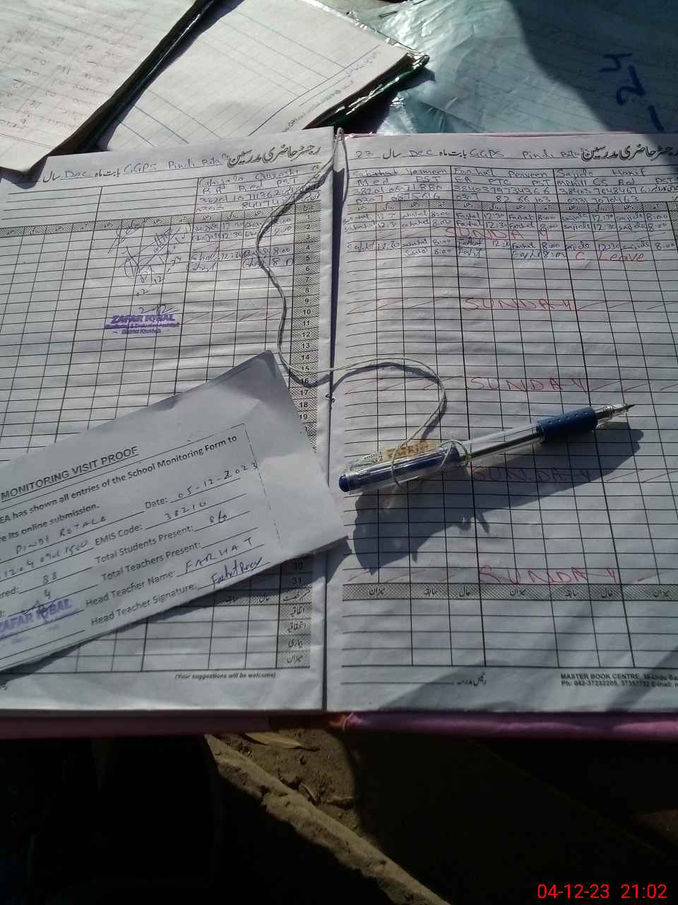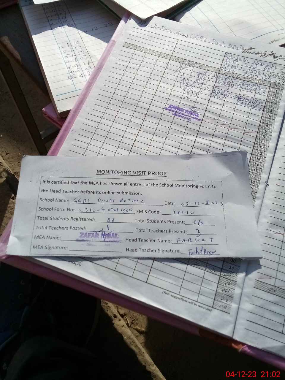 | Attendance Register | Head Teacher | MEA with School | Visit Proof |