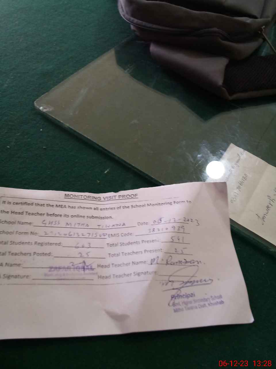 | Name: Mu**** Ra**** Designation: (School Headmaster's/Headmistress's) I/C PRINCIPAL Phone/Cell Number: 03**** |
