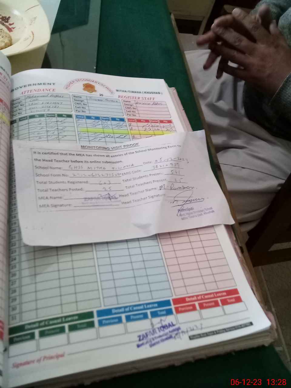 | Attendance Register | Head Teacher | MEA with School | Visit Proof |