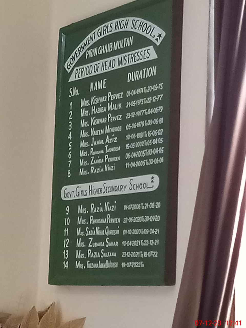 | EMIS Code: 36110038 | Name of School: GGHSS PIRAN GHAIB MULTAN | |||