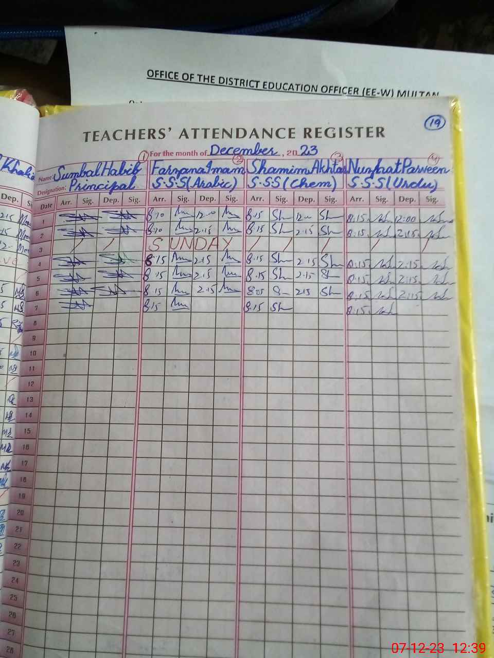 | CNIC | Full Name | Designation | R/C | Absence During Last Calender Month |