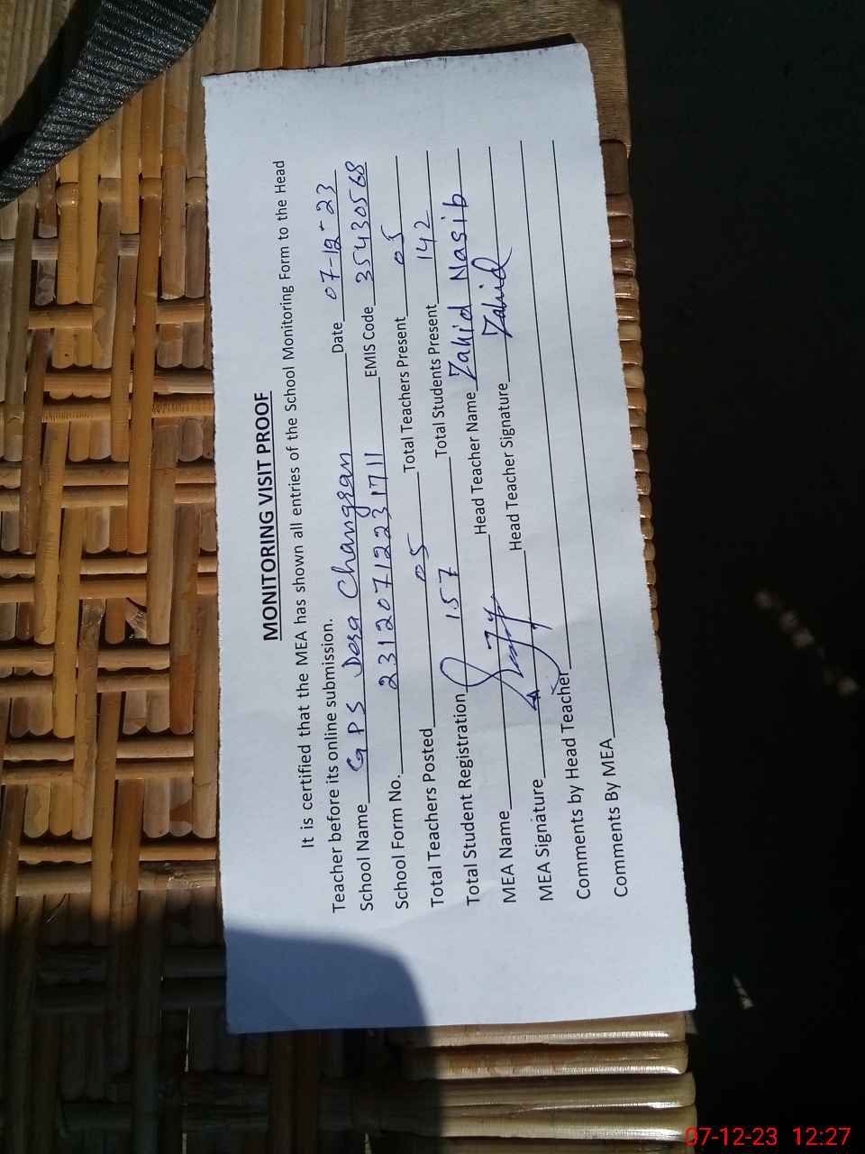 | EMIS Code: 35430568 | Name of School: GPS DERA CHANGRAN | |||