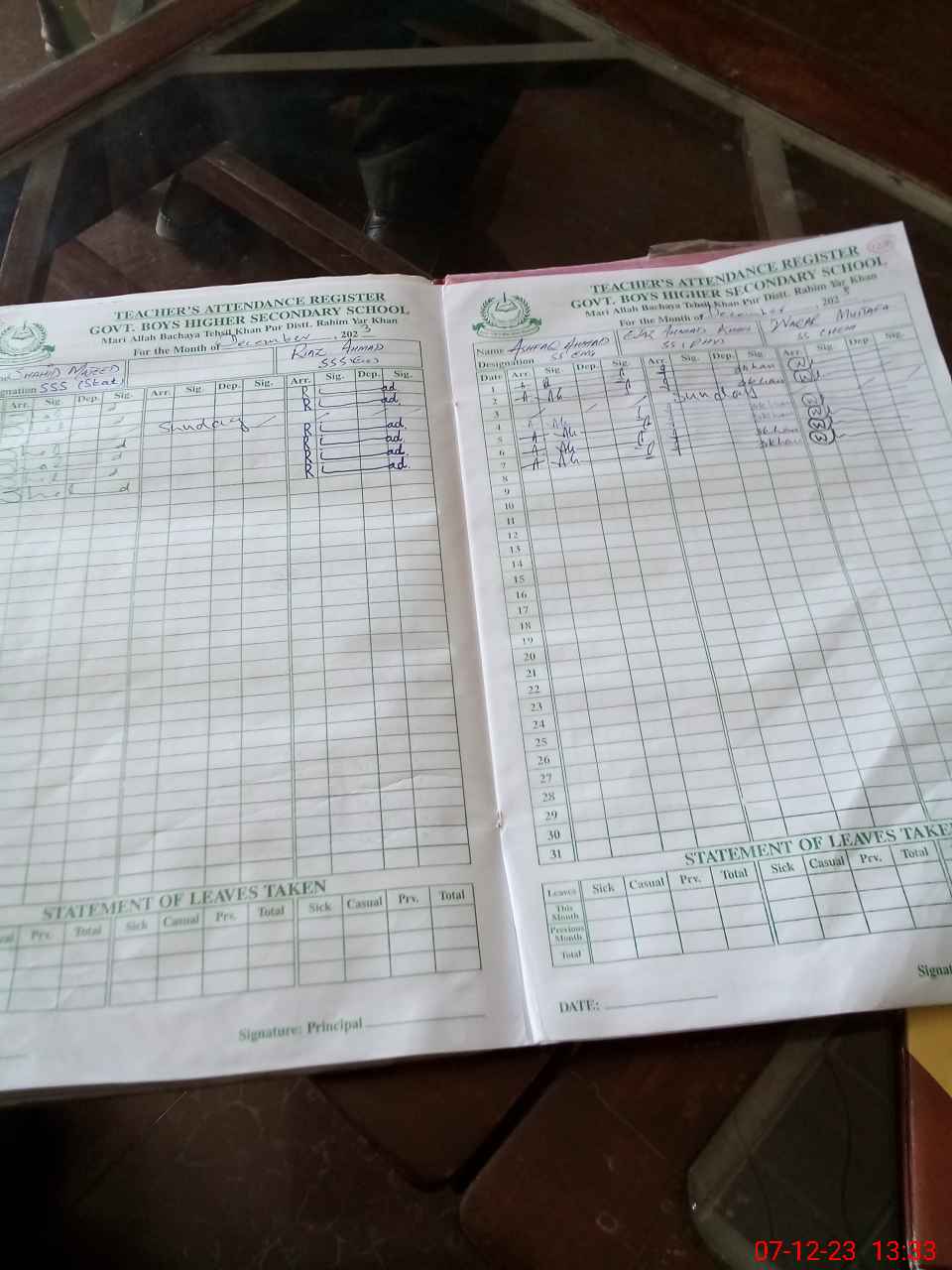 | CNIC | Full Name | Designation | R/C | Absence During Last Calender Month |