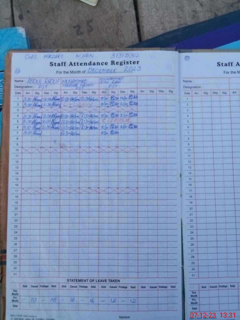 | Name: Ab**** Ra**** Designation: (School Headmaster's/Headmistress's) PST Phone/Cell Number: 03**** |