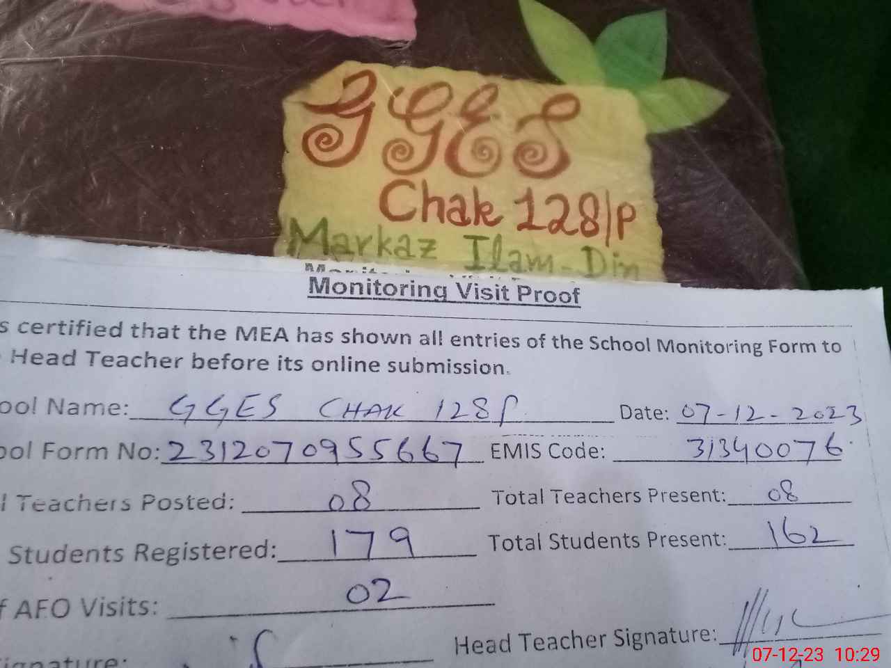 | EMIS Code: 31340076 | Name of School: GGES CHAK 128/P | |||