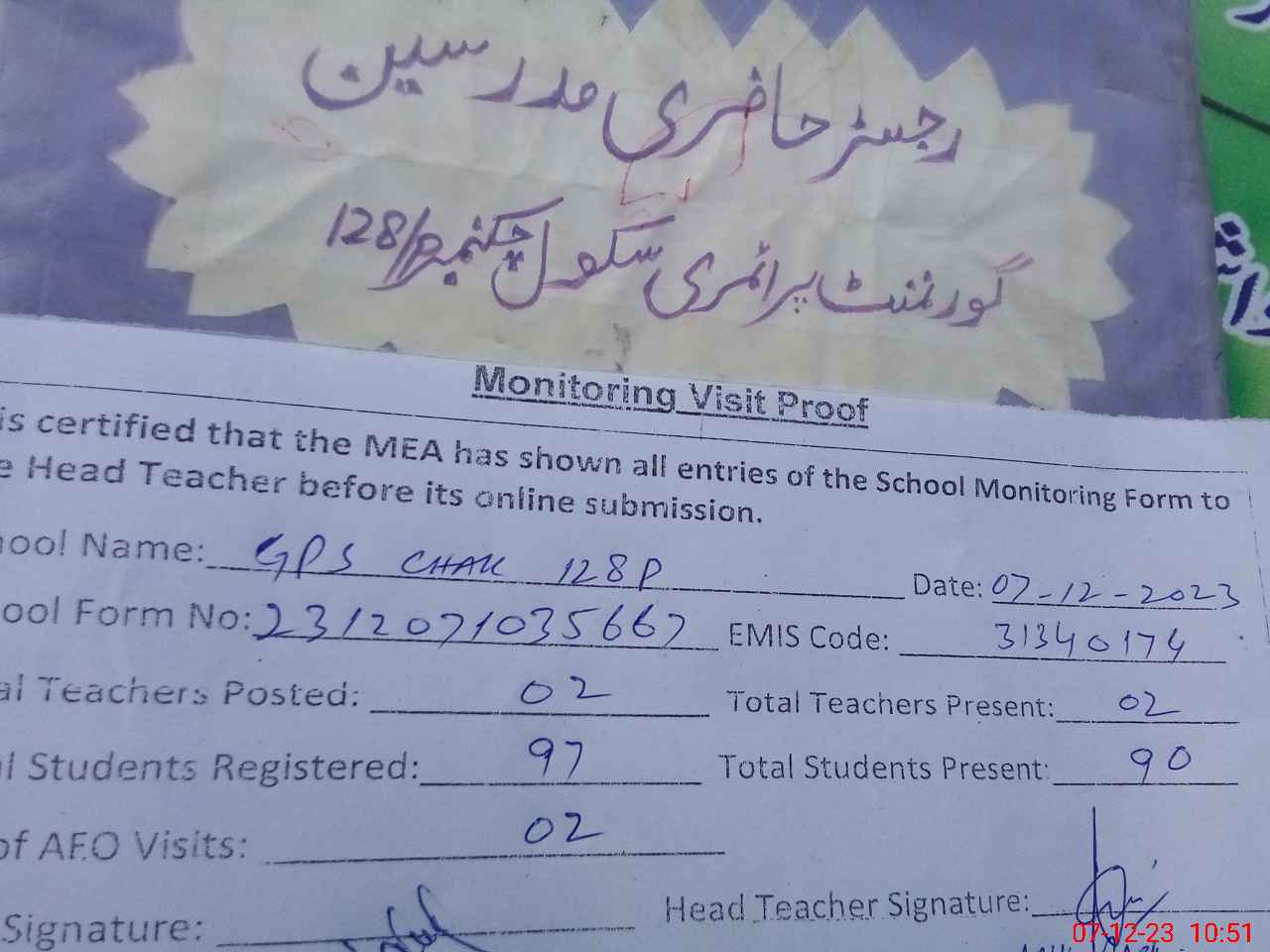 | EMIS Code: 31340174 | Name of School: GPS CHAK NO 128/P | |||