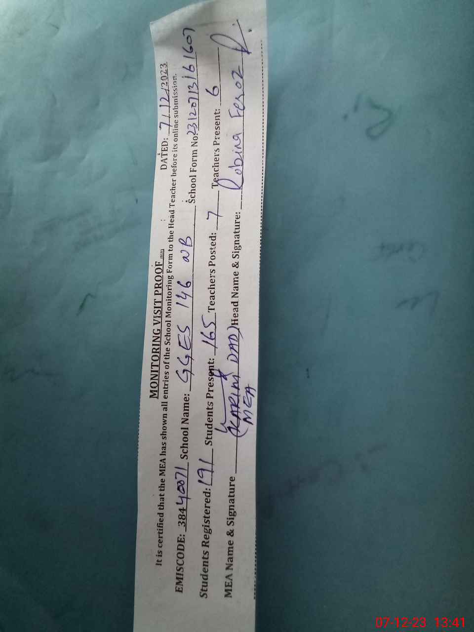 | EMIS Code: 38440071 | Name of School: GGES CHAK NO.146 NB | |||