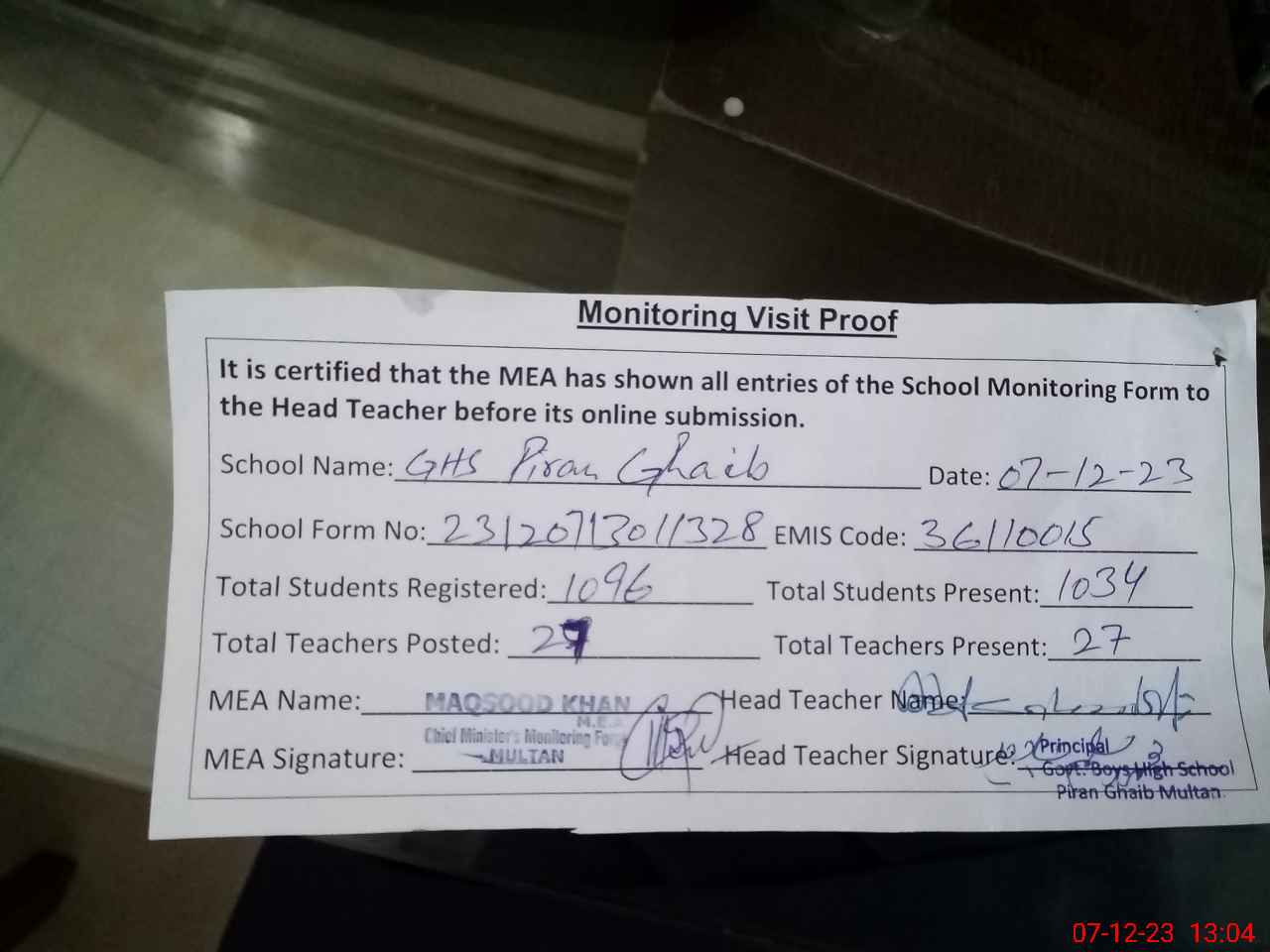 | EMIS Code: 36110015 | Name of School: GHS PIRAN GHAIB NEAR THERMAL POWER STATION | |||