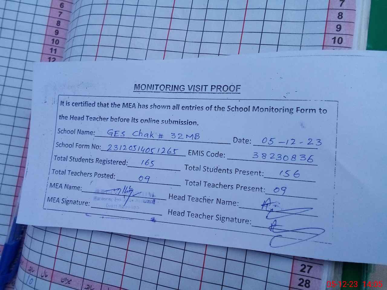 | EMIS Code: 38230836 | Name of School: GES CHAK NO. 32 MB | |||