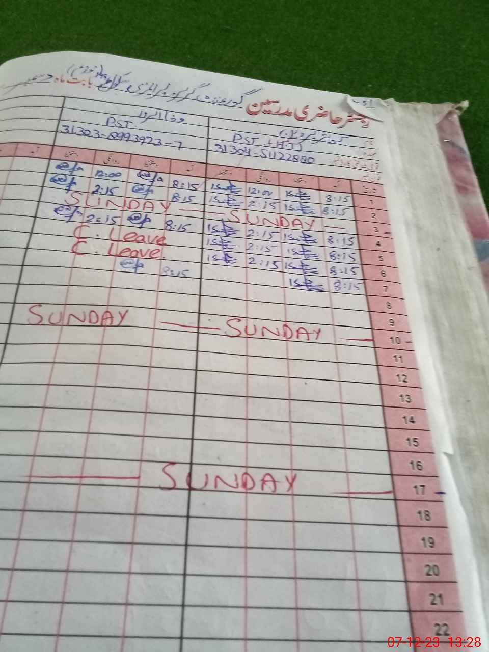 | CNIC | Full Name | Designation | R/C | Absence During Last Calender Month |