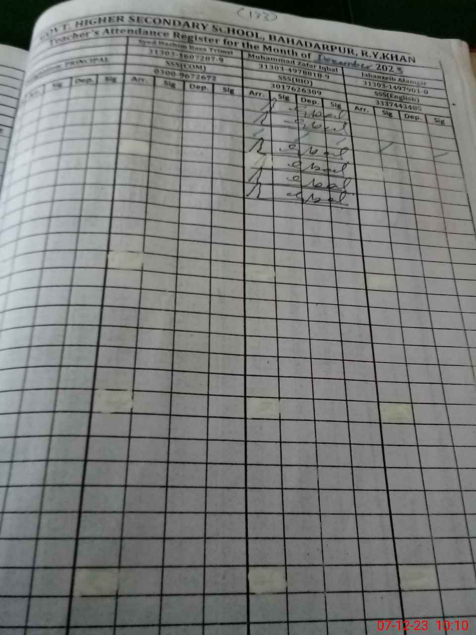 | Name: Sh**** Sa**** Ch Designation: (School Headmaster's/Headmistress's) Principal Phone/Cell Number: 03**** |