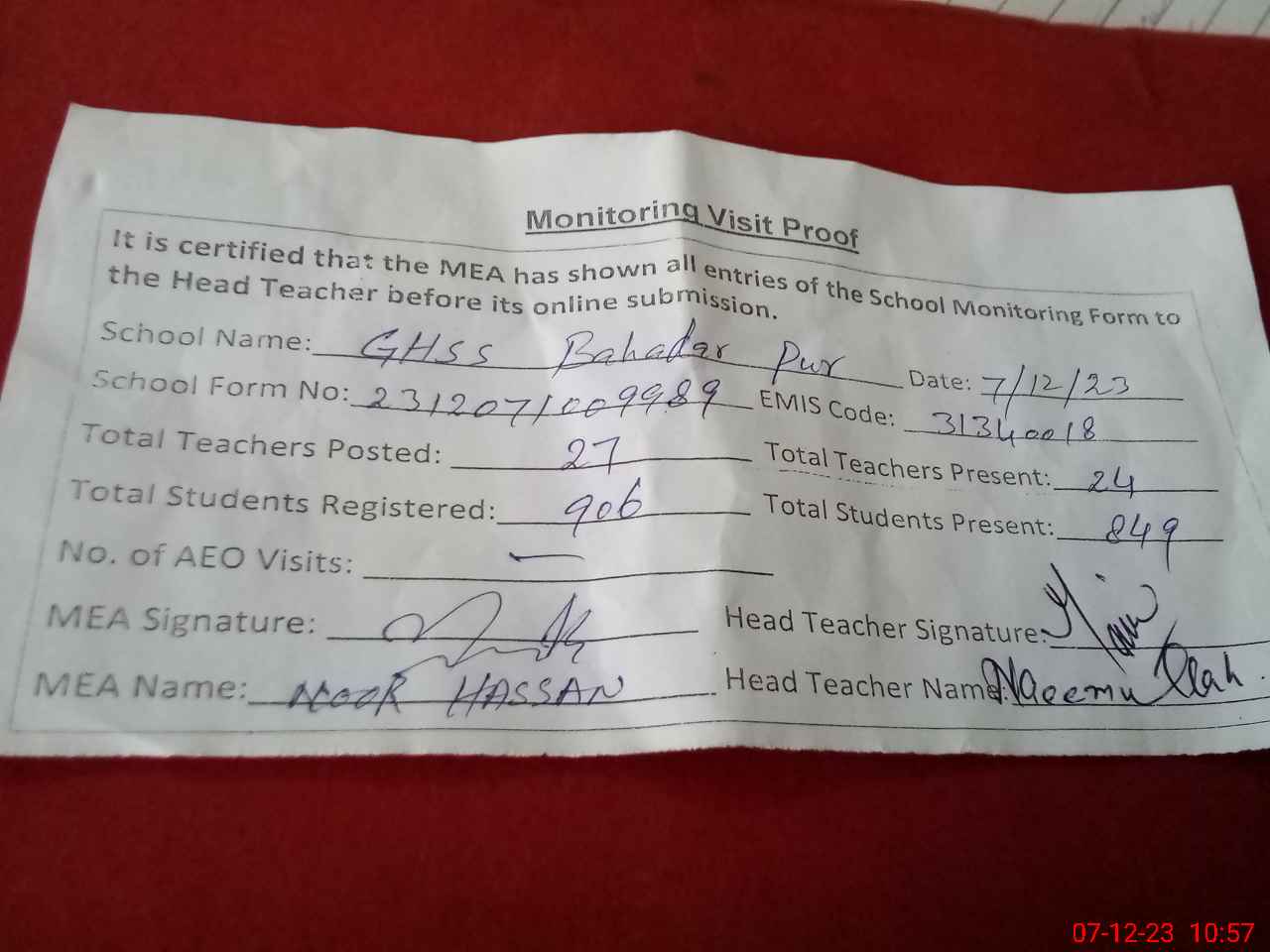 | EMIS Code: 31340018 | Name of School: GHSS CHOK BAHADAR PUR | |||