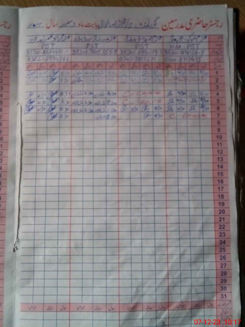 | CNIC | Full Name | Designation | R/C | Absence During Last Calender Month |