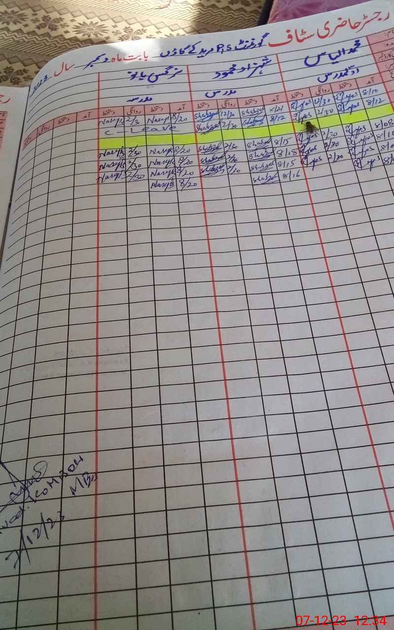 | CNIC | Full Name | Designation | R/C | Absence During Last Calender Month |
