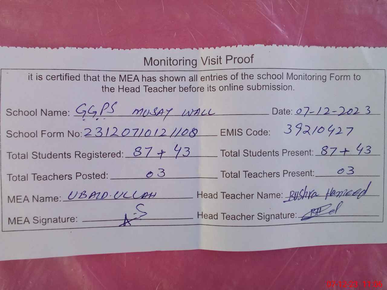 | EMIS Code: 39210427 | Name of School: GGPS MUSE WAL | |||