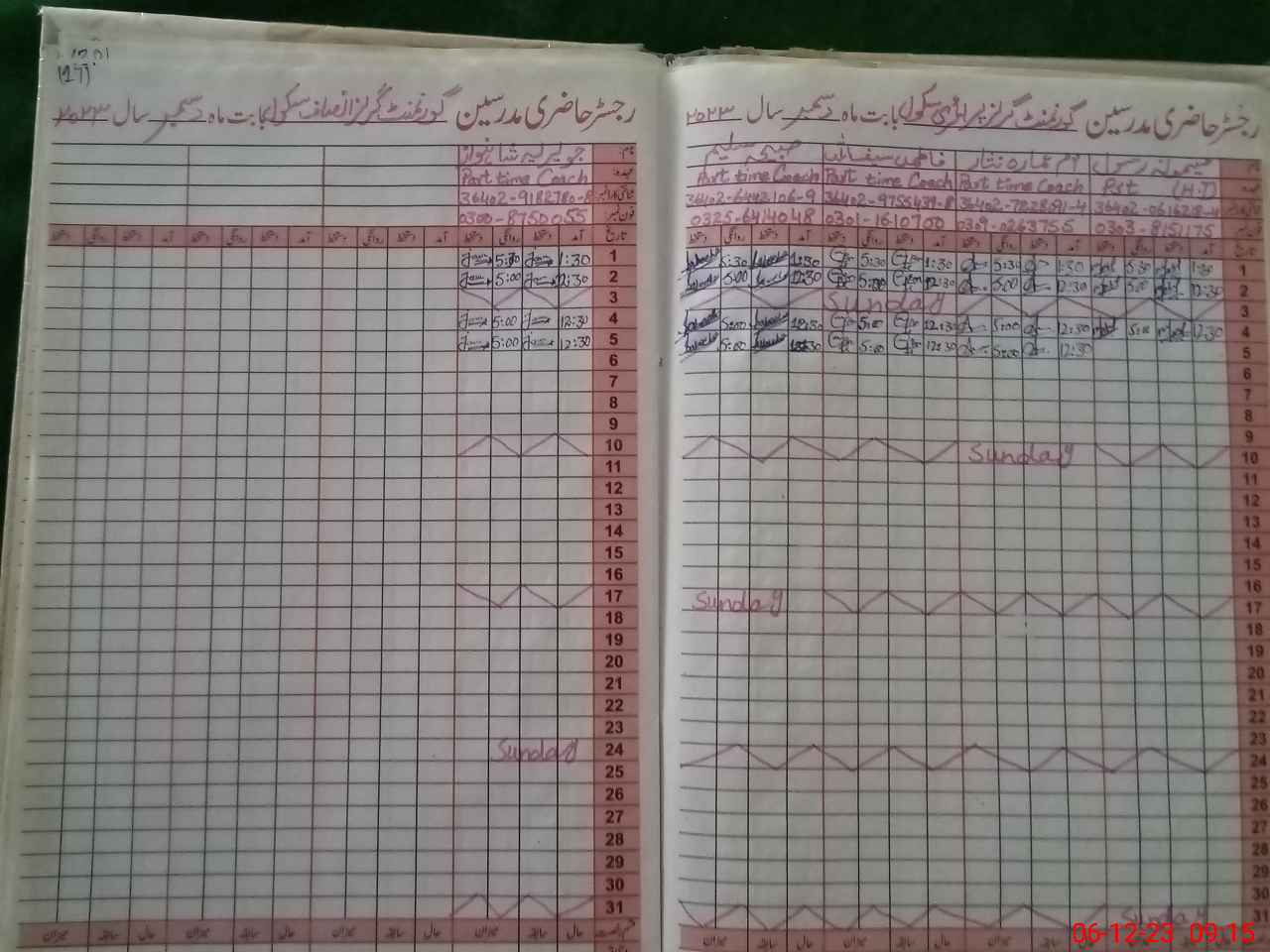 | Name: Fa**** BiBi Designation: (School Headmaster's/Headmistress's) PST Phone/Cell Number: 03**** |