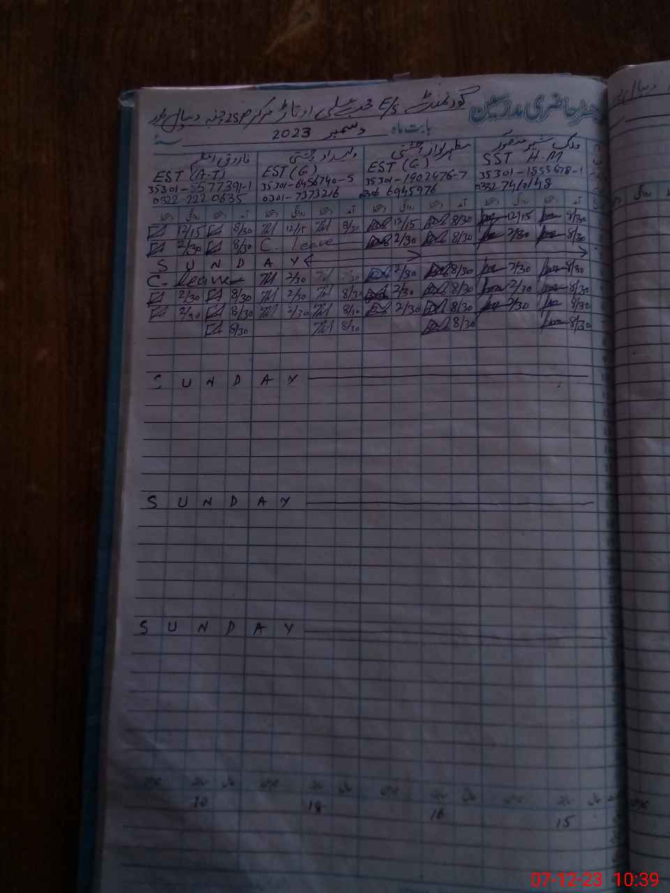 | CNIC | Full Name | Designation | R/C | Absence During Last Calender Month |