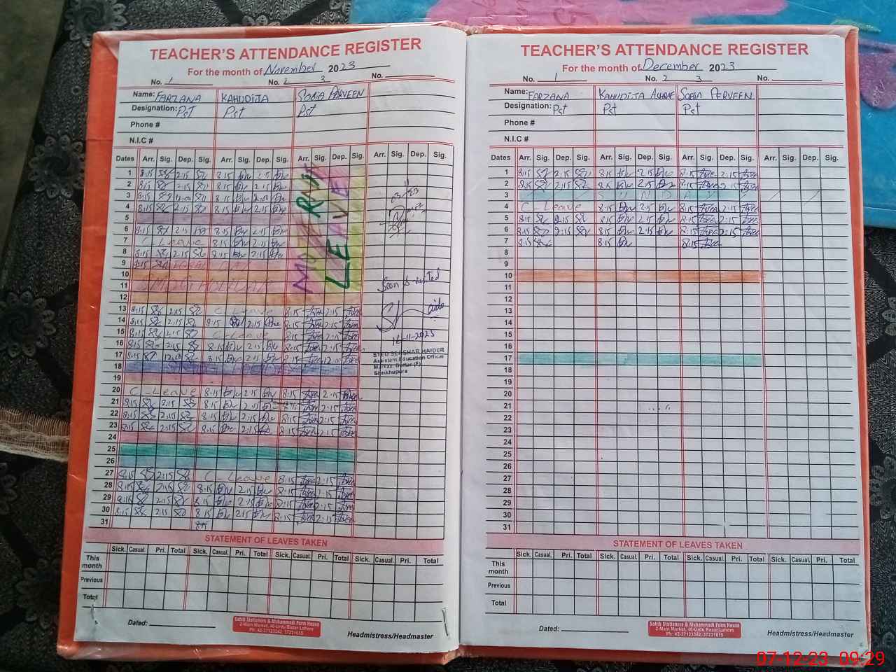 | Name: NA**** AR**** Designation: (School Headmaster's/Headmistress's) PST Phone/Cell Number: 03**** |