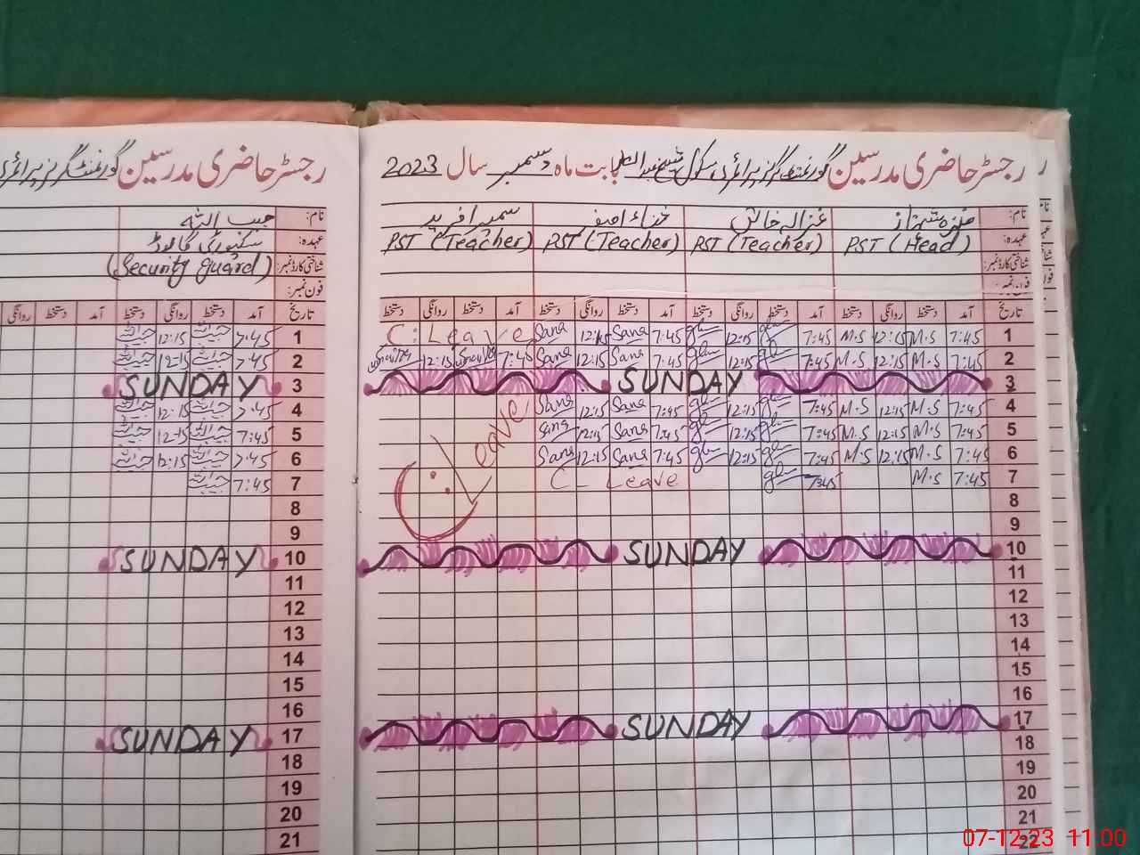 | CNIC | Full Name | Designation | R/C | Absence During Last Calender Month |