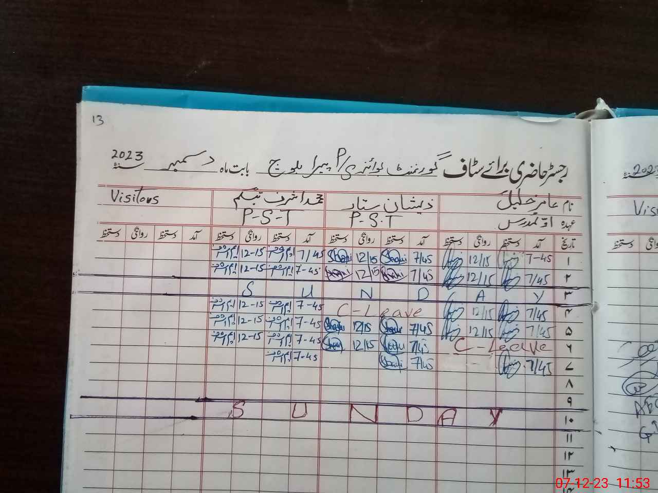 | CNIC | Full Name | Designation | R/C | Absence During Last Calender Month |