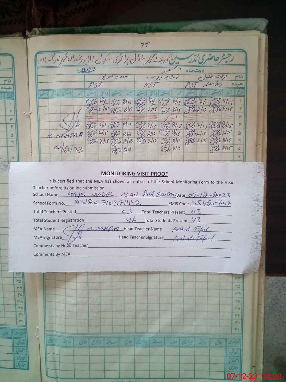 | EMIS Code: 35420647 | Name of School: GGPS MODEL ALAH PUR SAIDAN | |||