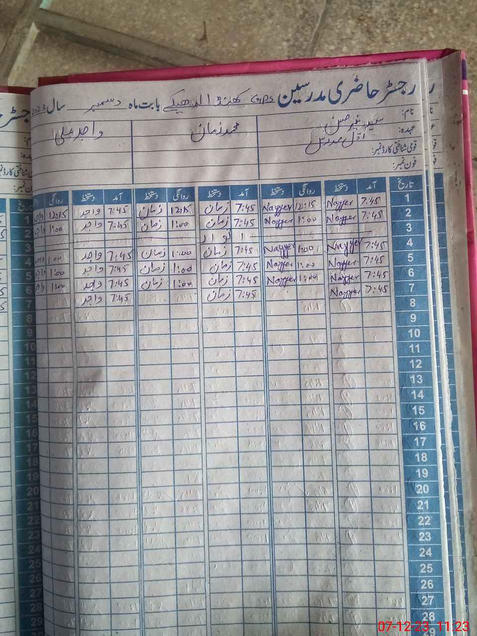 | CNIC | Full Name | Designation | R/C | Absence During Last Calender Month |