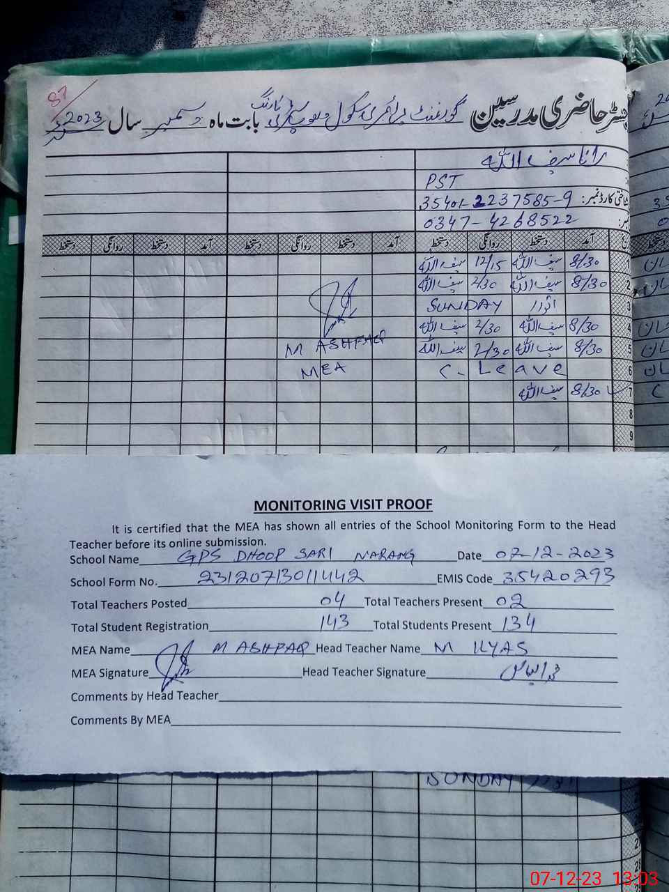| EMIS Code: 35420293 | Name of School: GPS DHOOP SARI NARANG | |||