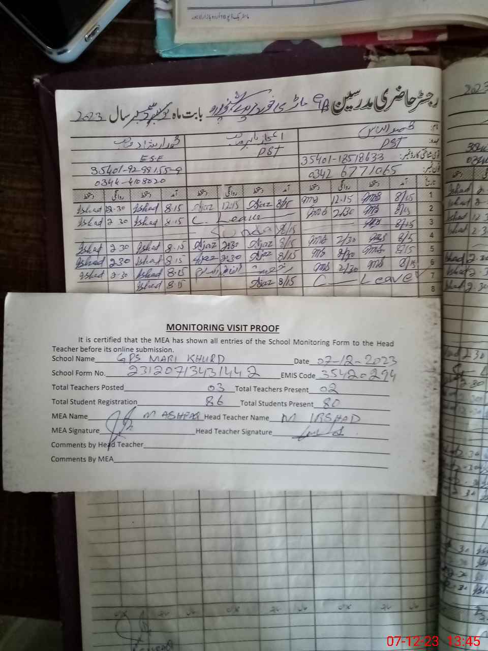 | EMIS Code: 35420294 | Name of School: GPS MARI KHURD | |||