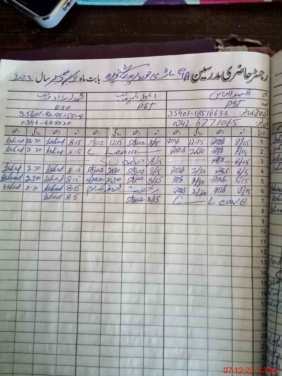 | Name: MU**** IR**** Designation: (School Headmaster's/Headmistress's) PST Phone/Cell Number: 03**** |