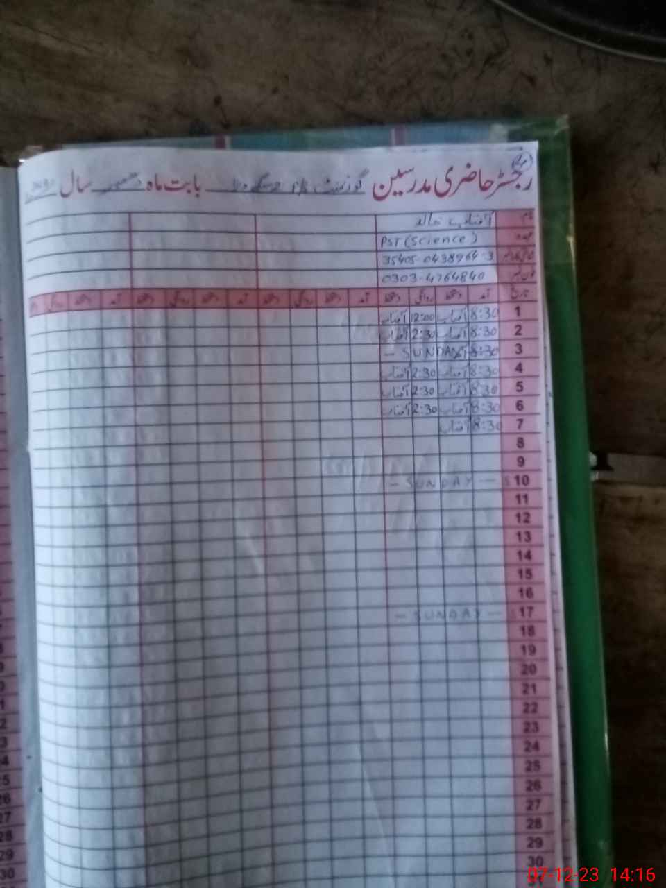 | Name: AF**** KH**** Designation: (School Headmaster's/Headmistress's) ESE Sci Math Phone/Cell Number: 03**** |
