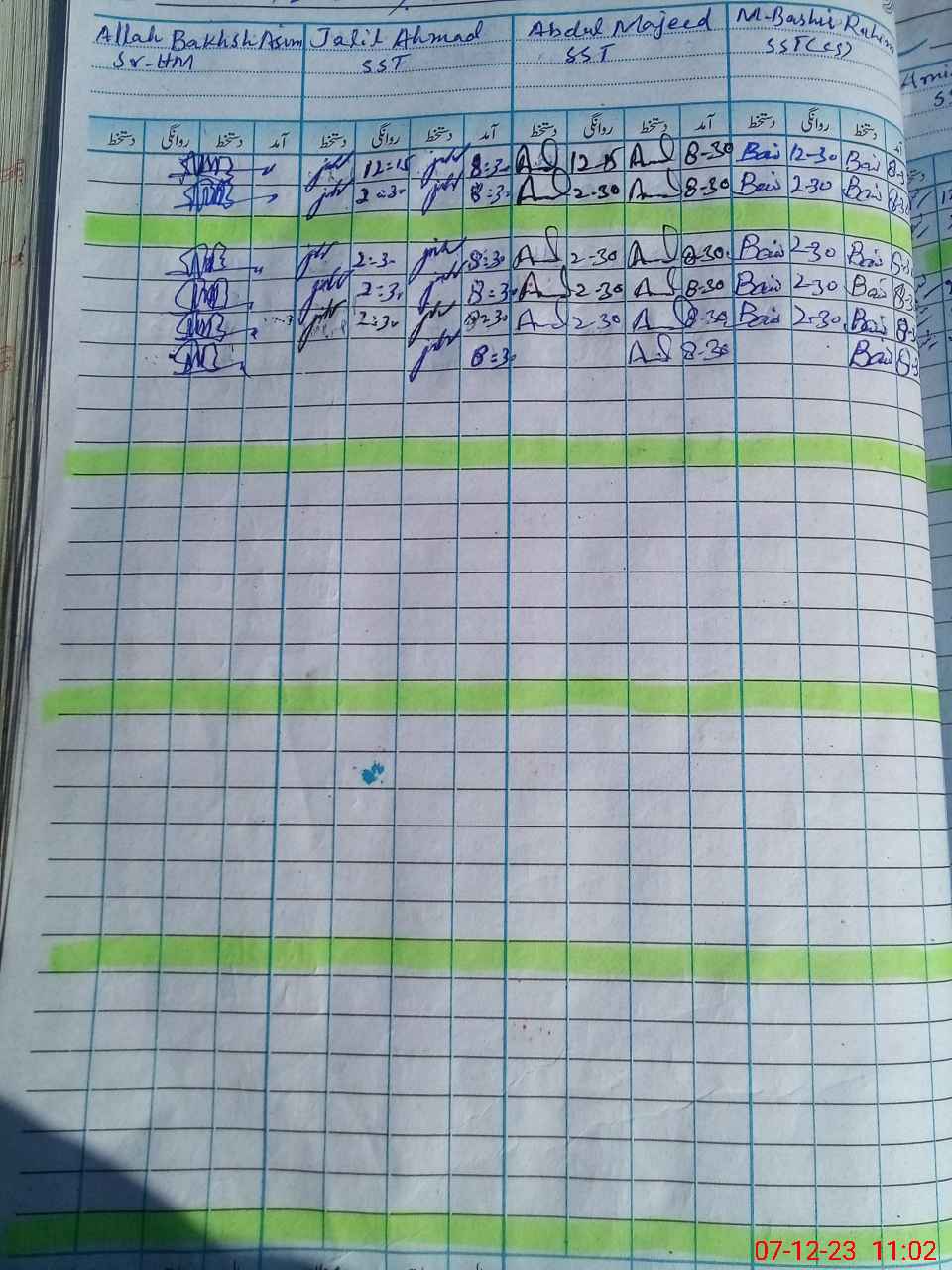 | CNIC | Full Name | Designation | R/C | Absence During Last Calender Month |